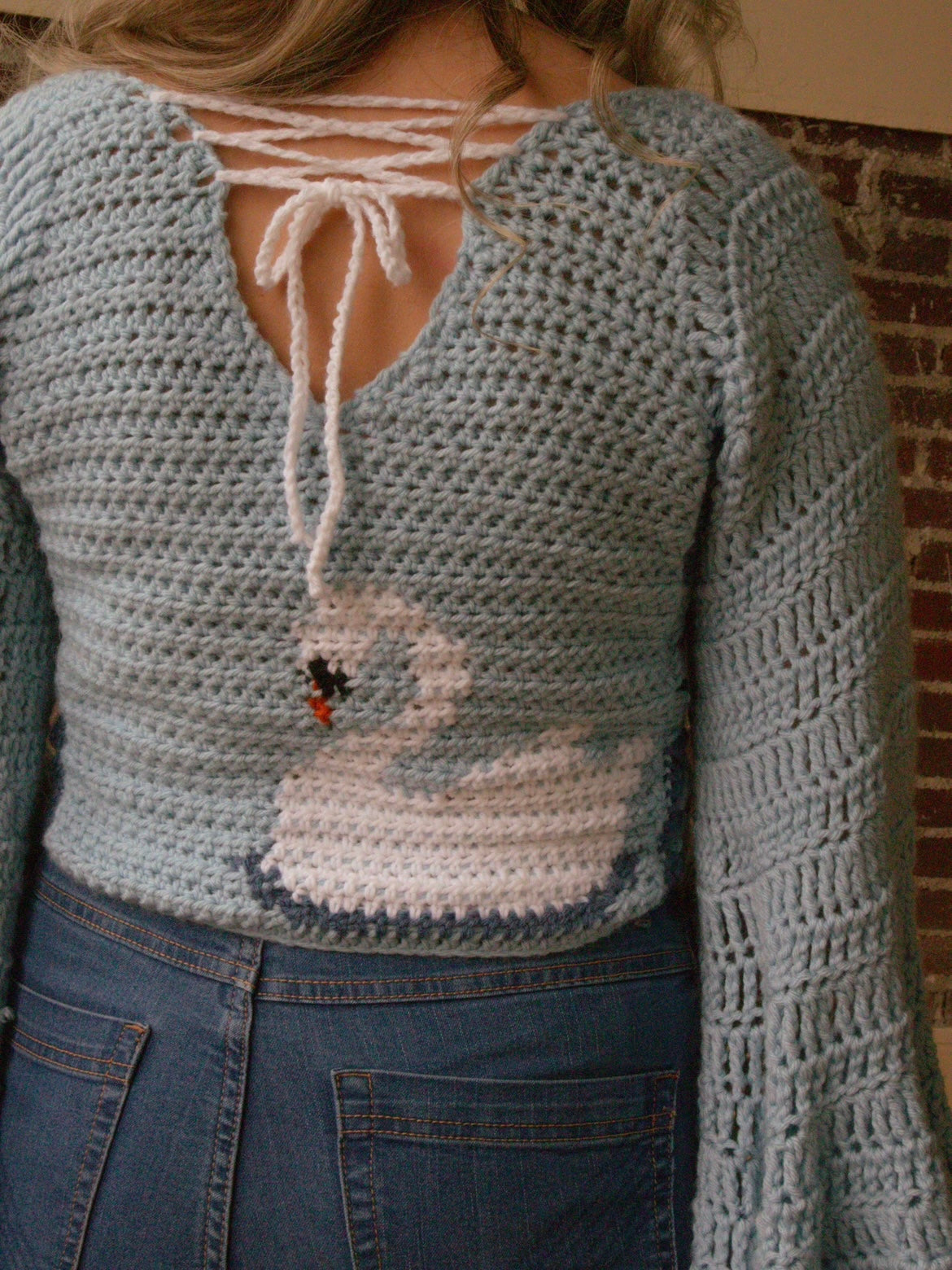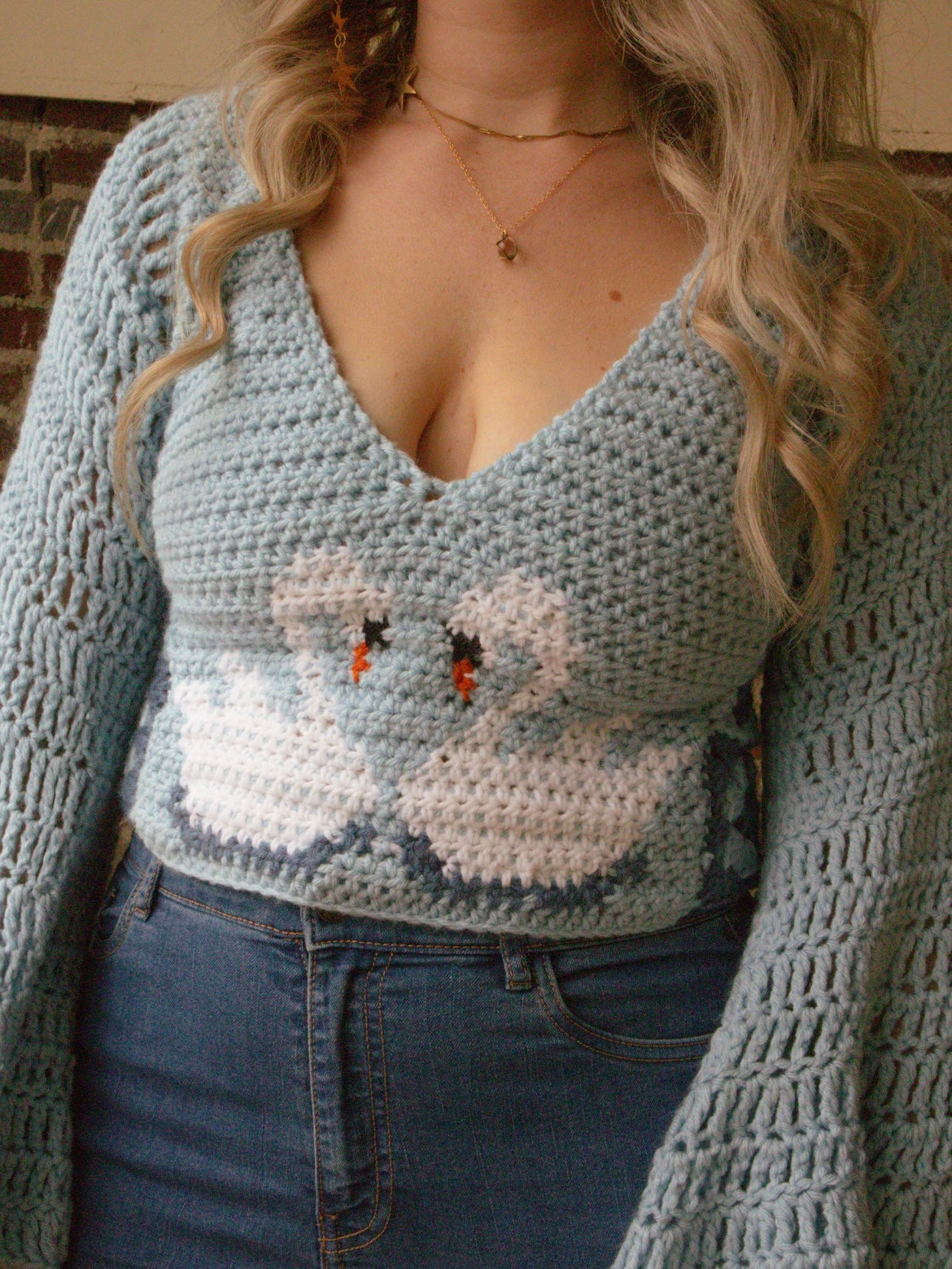 The Swan Lake top is truly the belle of the ball. The mirroring swans, the elegant bell sleeves, the crystal blue color?? Ladies and gentlemen, I fear she is perfect. Perhaps my favorite creation to date. 70s dream girl meets Swan Lake meets fairy princess. The girlies know and love the vibe!!!